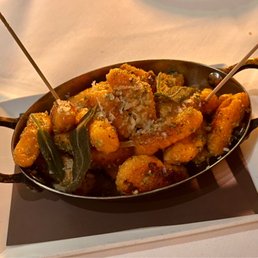 Stopped by for a friends wedding celebration. We were all running late but some of us arrived before the whole party so we chose to wait at the bar before being seated. We ordered a round of drinks & shortly after, the rest of the party arrived so we went upstairs. Our server Michael was very attentive, thank you for your patience as we were a big group & were all in celebratory mode. The complimentary bread & butter was the perfect starter. The bread was crispy, warm & soft on the inside. Everything we all had was perfect, flavorful & filling. All fresh & good quality. The ambiance is very dim, intimate & they had a live band that really added to the vibe. (Minus one star because the bartender that helped us downstairs seemed a bit annoyed by the group & the fact that we wanted to pay for our drinks separately, I didn't realize it was that big of a deal, we all ordered individually)